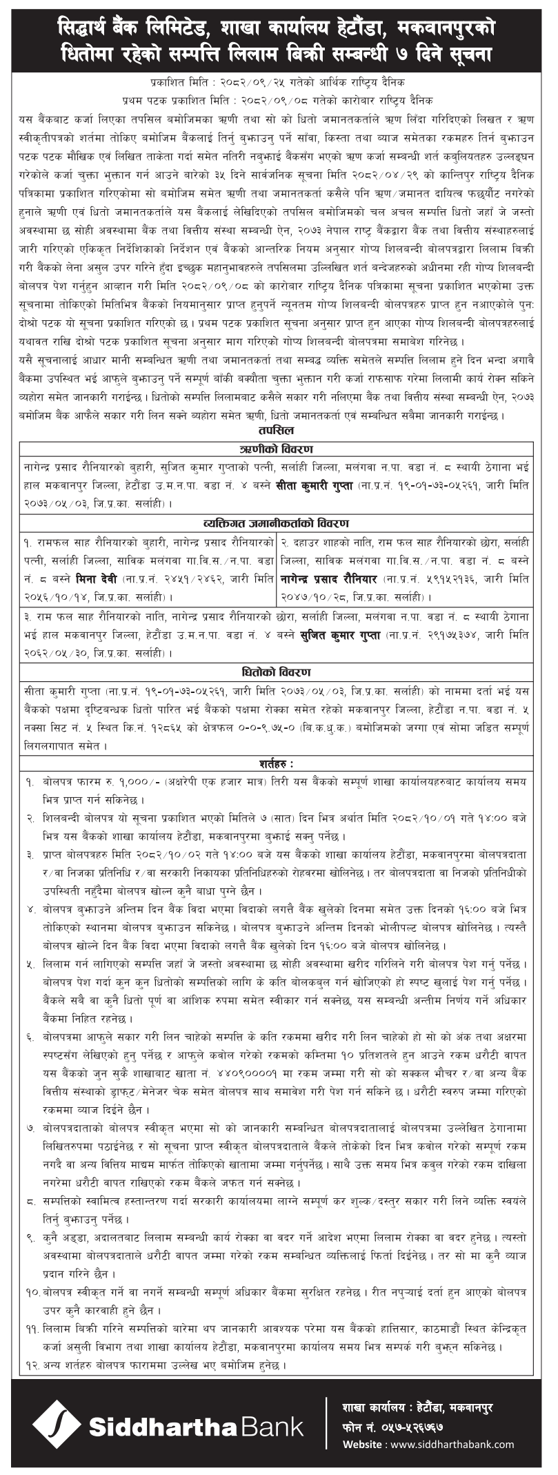 • Auction of Mortgage Property (लिलाम तथा बिक्री) |