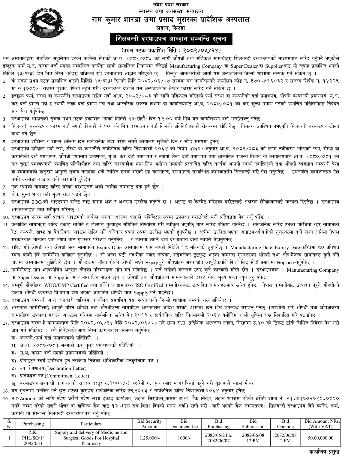 • Procurement of Medicine for Health Posts (2081/82), BMC |