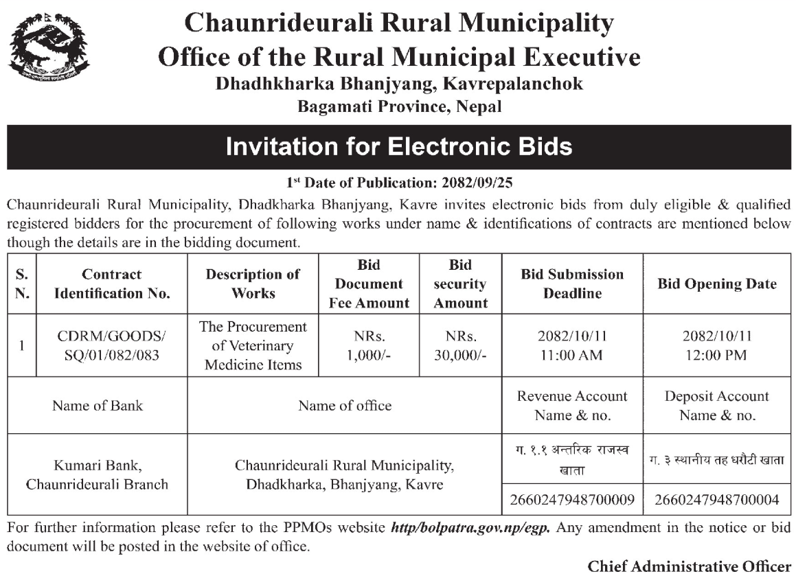 • Procurement of Medicine for Health Posts (2081/82), BMC |