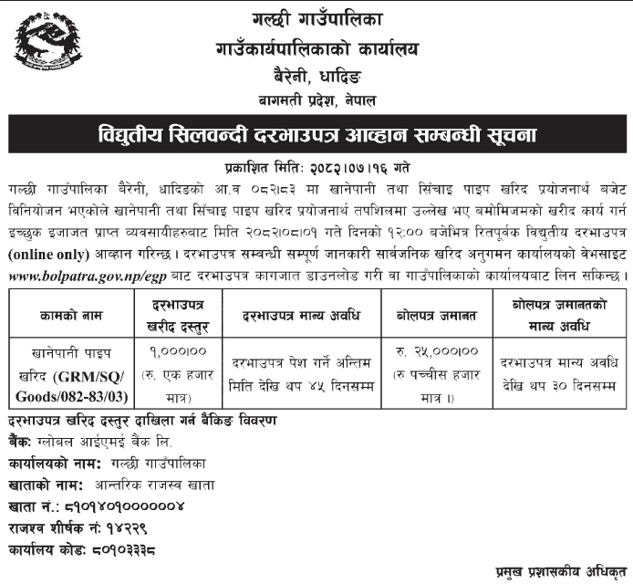 • Procurement of Medicine for Health Posts (2081/82), BMC |