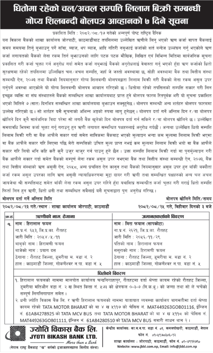 • Auction of Mortgage Property (लिलाम तथा बिक्री) |