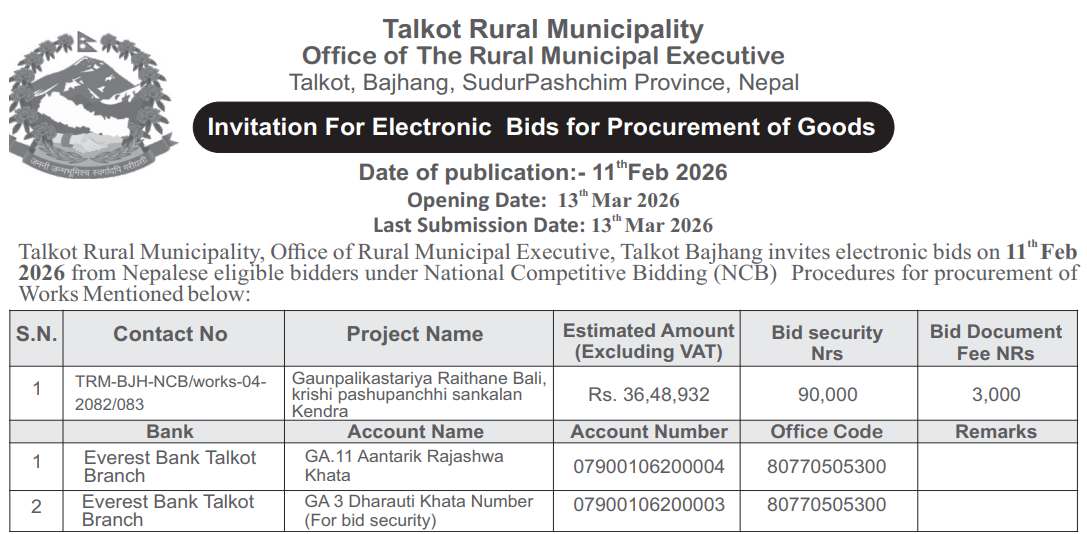 Comprehensive Database of All Tenders in Nepal, Bid published in Nepal, Contract Award and eGP Notice under EGP system. A digital organization set up to address the crucial needs of emerging businesses in our Nation. We value the key role of businesses in our Nation’s economic growth and prosperity. Our aim is to be the catalyst, propelling emerging businesses into new frontiers of growth and performance.