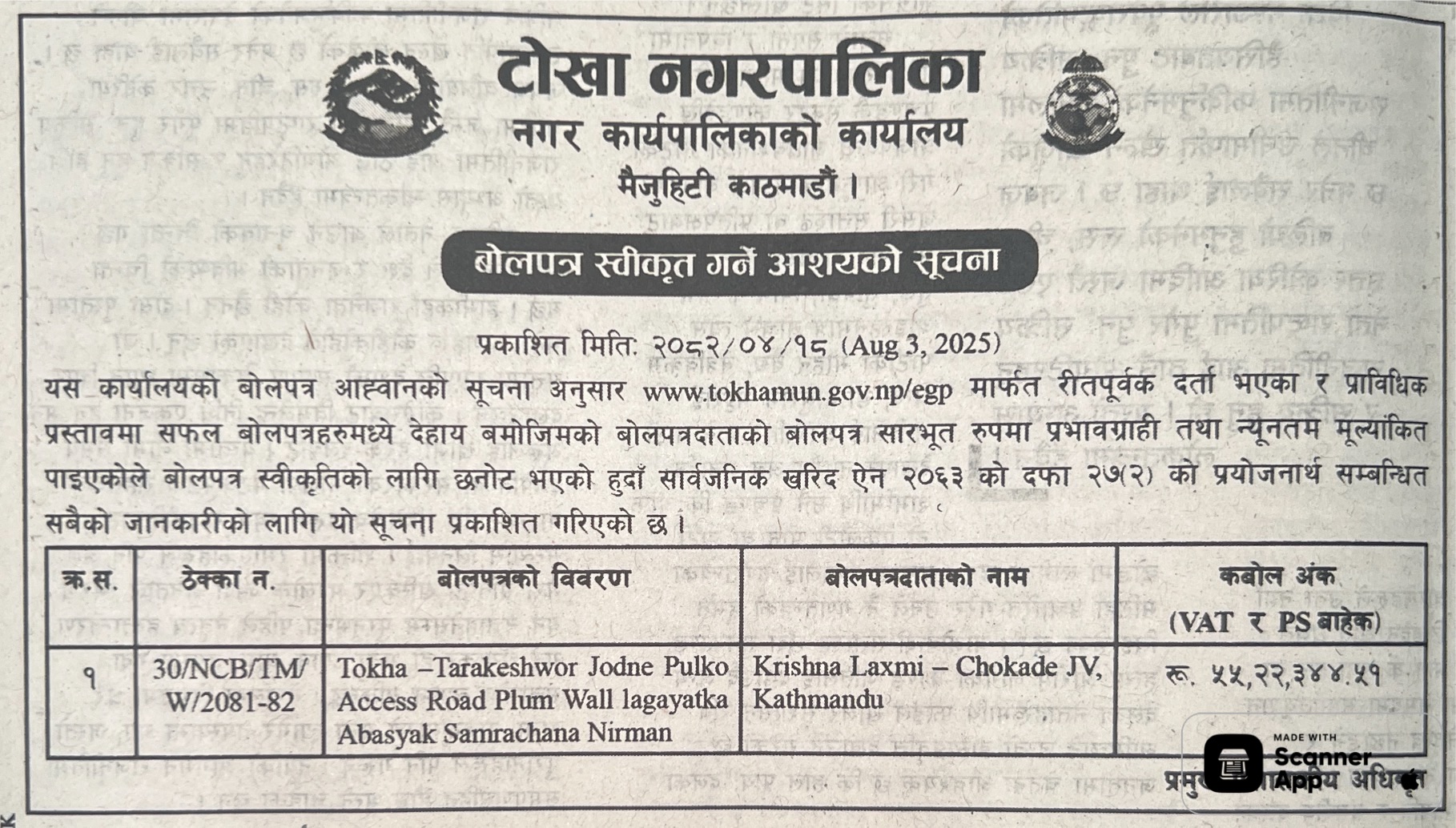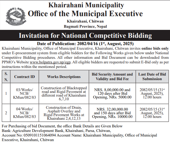 | 18 | Kawasoti Muncipality | Kusnahari Bato Staronnati | 01/08/2025 | PPMO | 31/08/2025 | Click Here | |