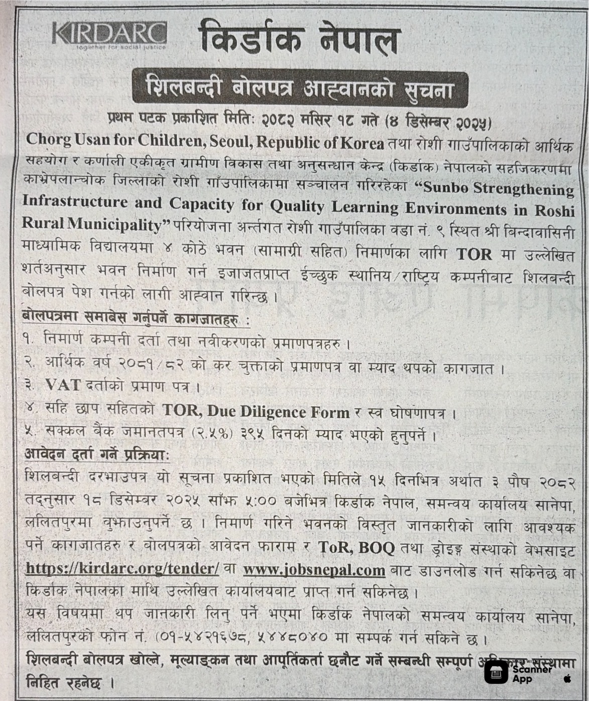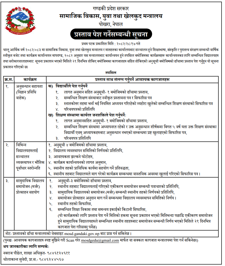 | 213 | Narpabhumi Rural Municipality, Manang | NAR TARJALI | 03/12/2025 | PPMO | 18/12/2025 | Click Here | |