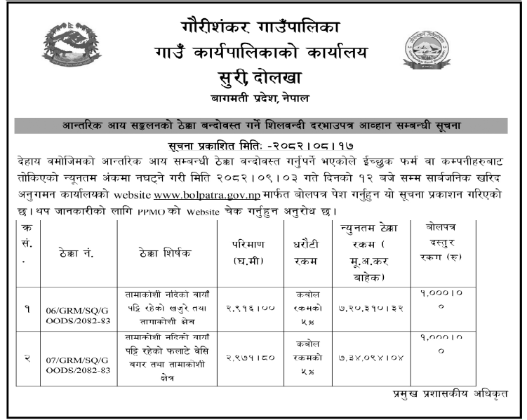 | 4 | Gadhawa Gaupalika | prajjawal smriti adhyayan bhawan nirman gadhawa-04 parasapur | 03/12/2025 | PPMO | 04/01/2026 | Click Here | |
