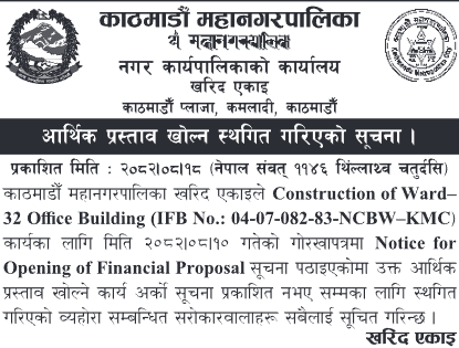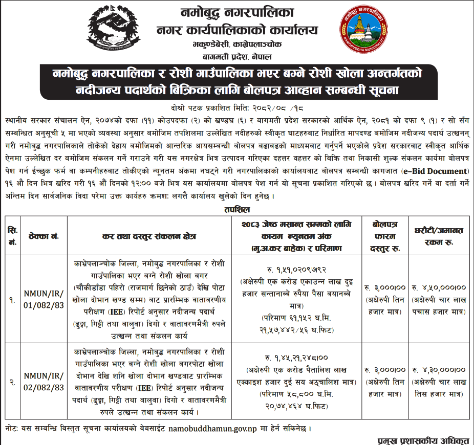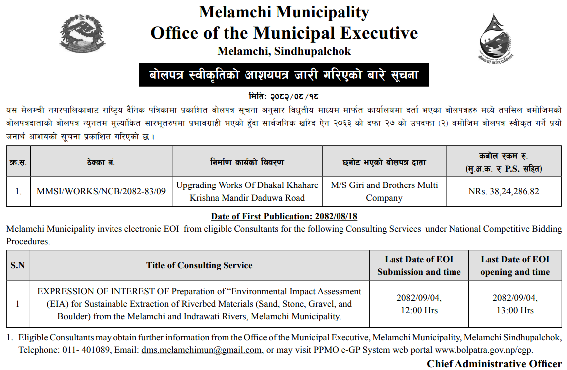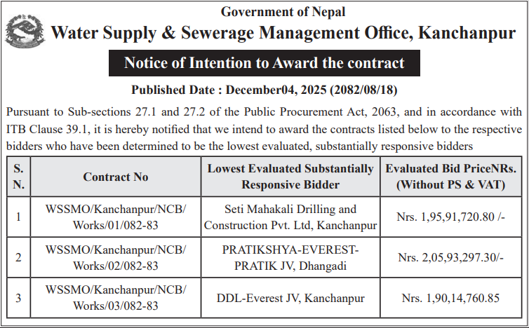 | 26 | Mandandeupur Municipality | Talo Singe Sichae Kulo Nirman Aayojana | 03/12/2025 | PPMO | 04/01/2026 | Click Here | |