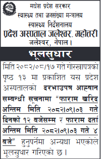 | 263 | National Academy of Medical Sciences, Bir Hospital | Supply and Delivery of Housekeeping Goods. | 03/12/2025 | PPMO | 02/01/2026 | Click Here | |