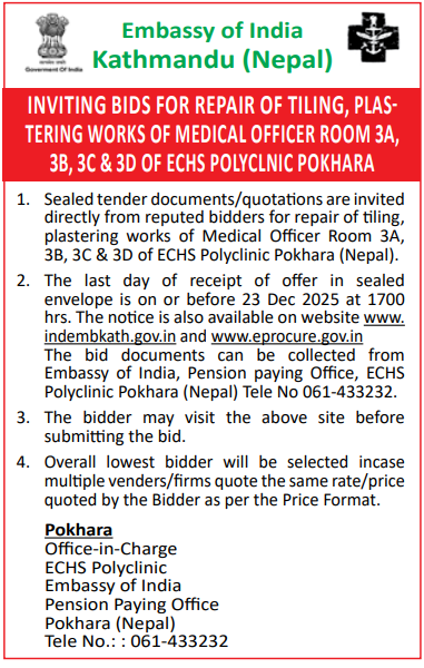 निर्माण सम्बन्धी प्रकाशित सम्पूर्ण ठेक्का टेन्डर तथा बोलपत्र सुचनाहरु प्रदेश अनुसार 04/12/2025 (Thursday)