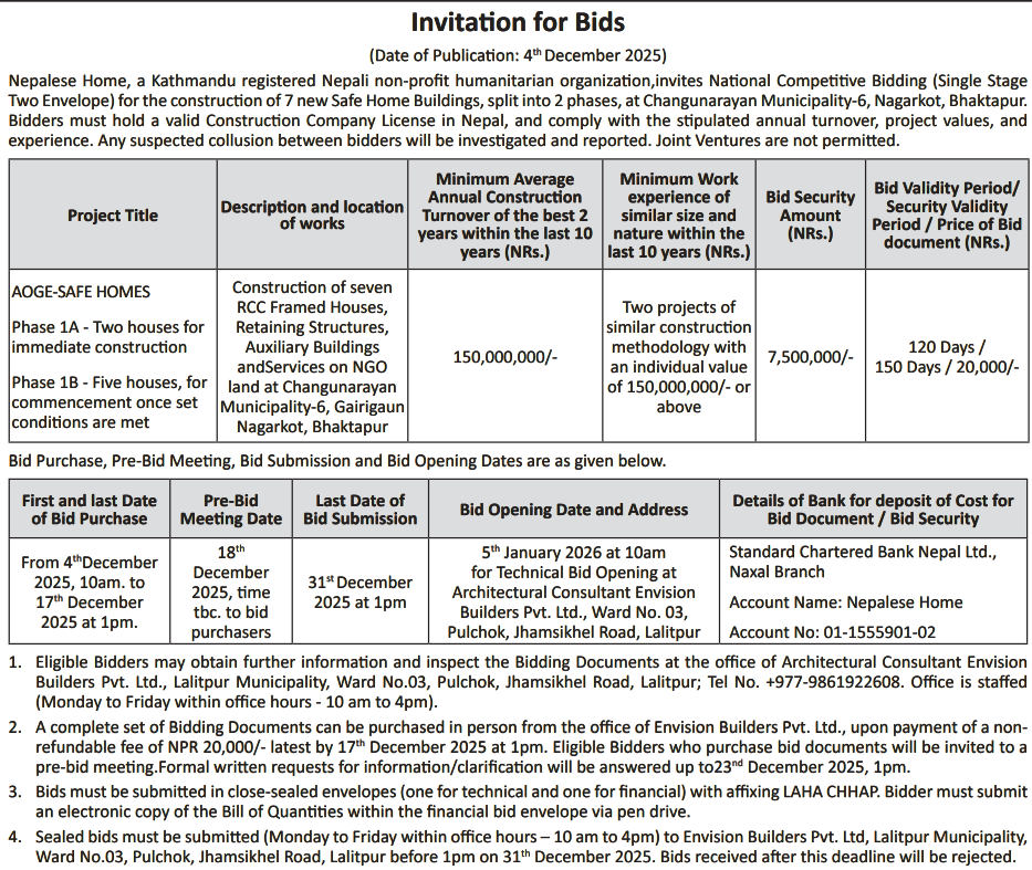 | 41 | Bharatpur Metropolitian City Office | Jestha Nagarik Bishramsthal Nirman BMC-14 | 03/12/2025 | PPMO | 02/01/2026 | Click Here | |