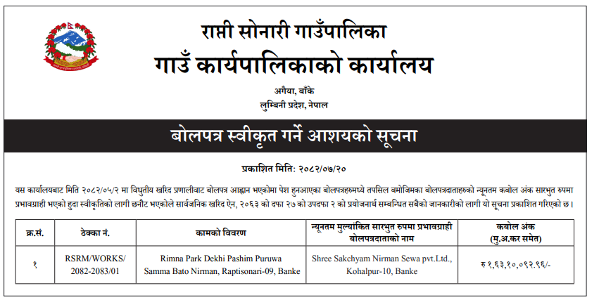 | 51 | Kerabari Rural Municipality | Upgrading of Topthumki Tourism Area, KRM-04 | 06/11/2025 | PPMO | 21/11/2025 | Click Here | |