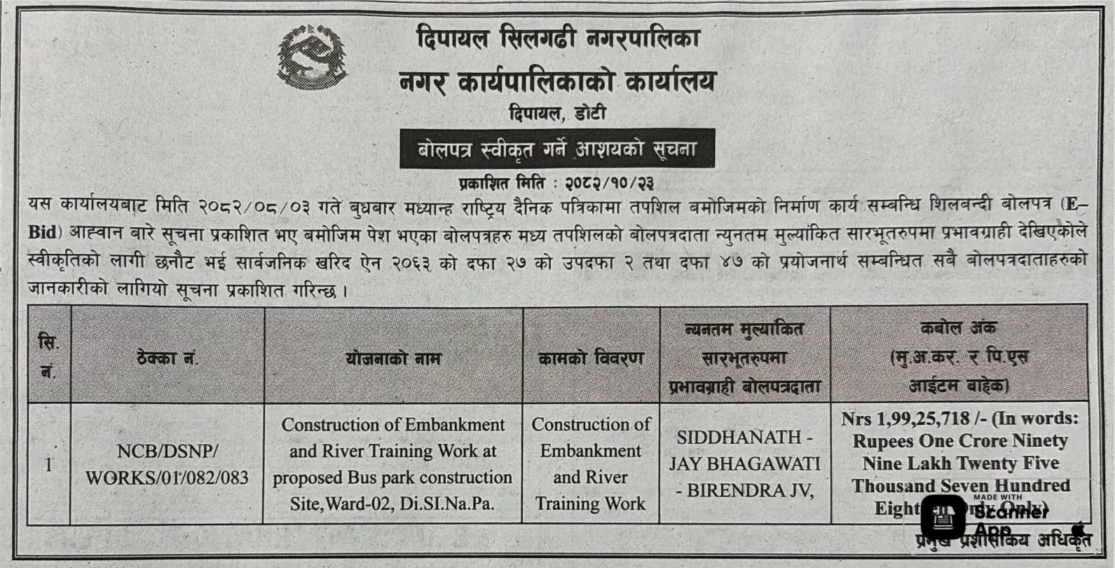 | 168 | IDOSYANGJA | Bhudrumpola Digureni Thaple Motorbato Aandhikhola 6 | 06/02/2026 | PPMO | 10/03/2026 | Click Here | |