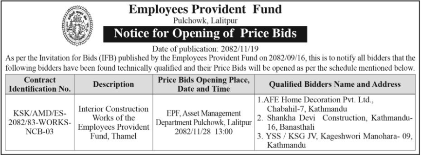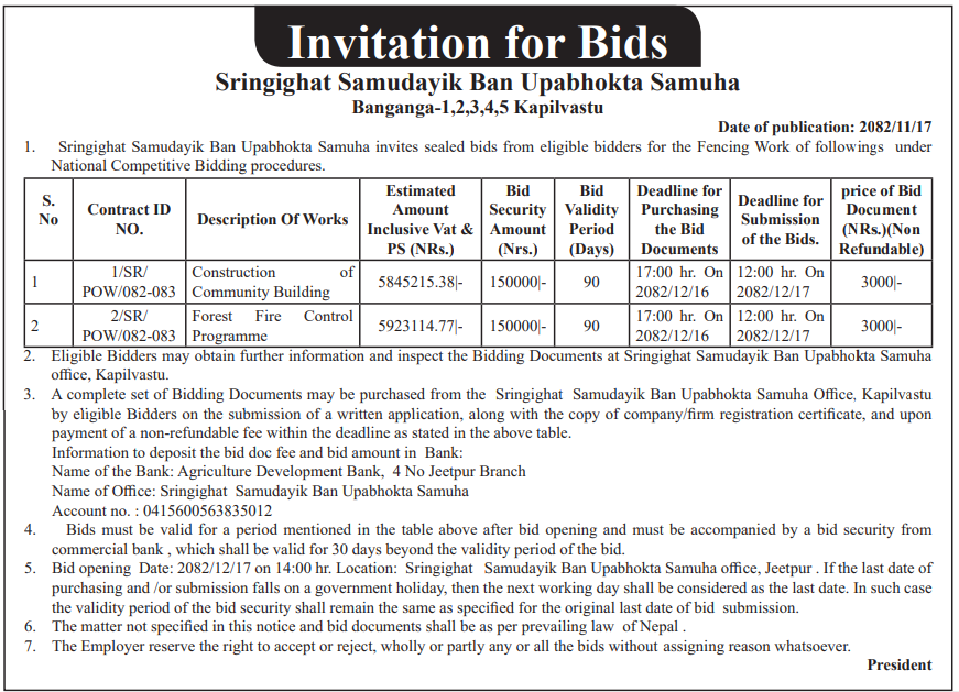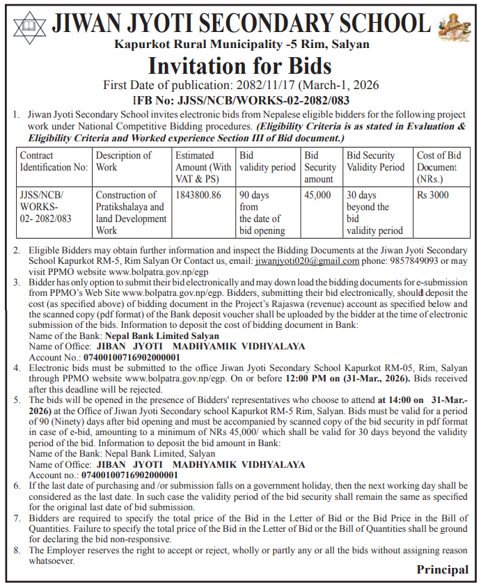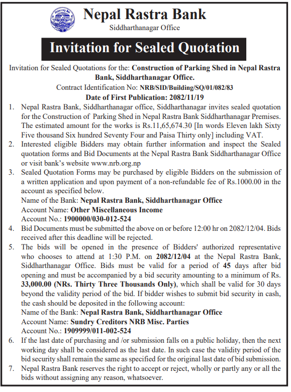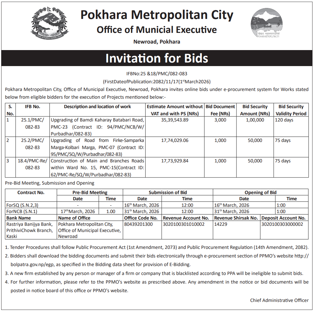 | 17 | Nepal Bank Limited | Outsourcing of Sweeper/Messenger Services | 03/03/2026 | PPMO | 02/04/2026 | Click Here | |