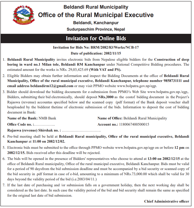 - Procurement of Medicine for Health Posts (2081/82), BMC |