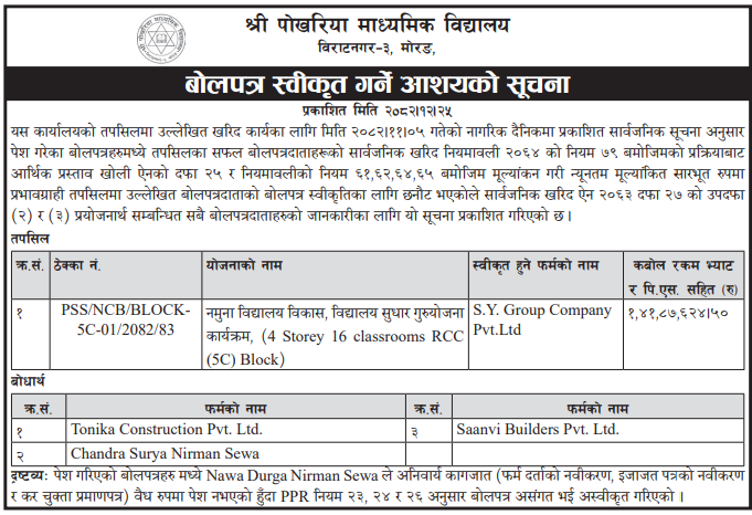 | 36 | Pathari Shanishchare Municipality | Sthaniya Bisayako Pathyapustak Chapai ( Classroom 1 to 8) Sambandi Karya Pathari Shanischare Nagarpalika | 07/04/2026 | PPMO | 22/04/2026 | Click Here | |