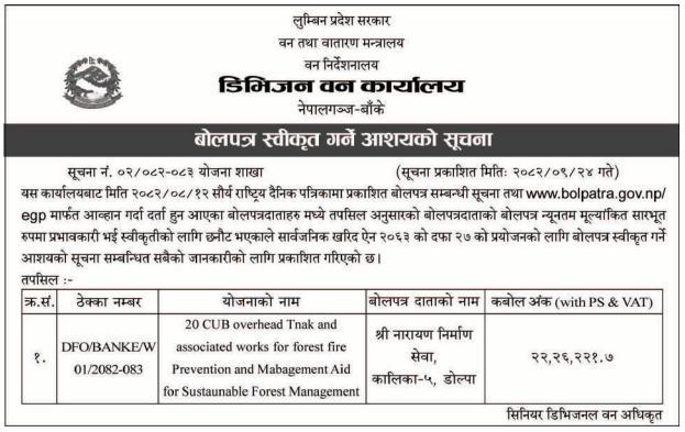 | 36 | Division Forest Office, Bardiya | Construction of mesh wire in various three areas of district | 08/01/2026 | PPMO | 06/02/2026 | Click Here | |