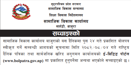 | 93 | Social Development office, Chainpur, Bajhang | Gorkhali Basic School Gherbar Nirman. | 08/01/2026 | PPMO | 23/01/2026 | Click Here | |