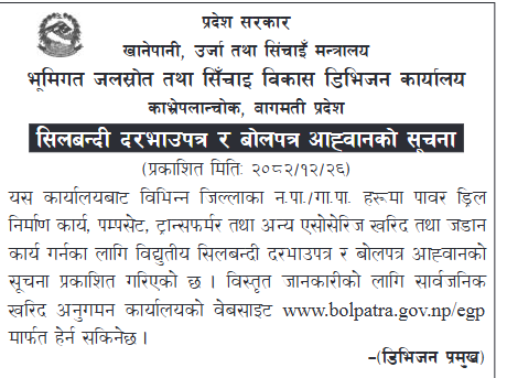 प्रदेश ३ मा प्रकाशित निर्माण सम्बन्धी बोलपत्र तथा आशयका सुचनाहरु