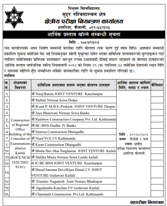 | 35 | Social Development Office, Kailali | Contemporary Initiatives Agang Aashram Sanrachana Nirman Godawari-08 Kailali | 09/04/2026 | PPMO | 11/05/2026 | Click Here | |