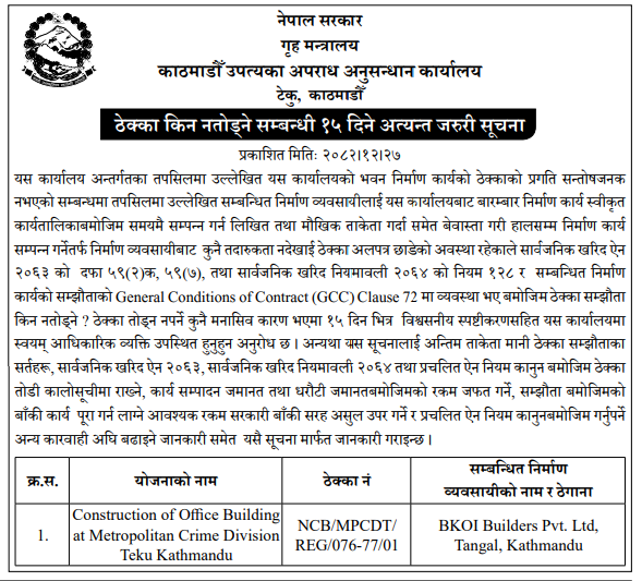 | 125 | District Police Office Rasuwa | Maintenance work | 09/04/2026 | PPMO | 24/04/2026 | Click Here | |