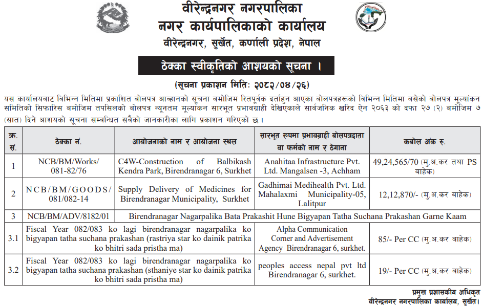 - Procurement of Medicine for Health Posts (2081/82), BMC |