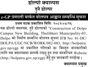 प्रदेश ६ मा प्रकाशित निर्माण सम्बन्धी बोलपत्र तथा आशयका सुचनाहरु