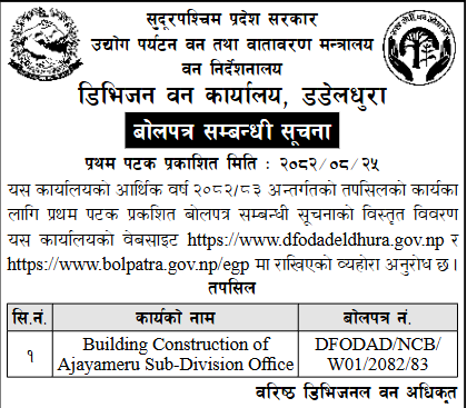 | 2 | Samajik Bikash Division Office,Rupandehi | Samaymai Aa Vu Bhautik Purbadhar Nirman, Kotahimai-5, Rupandehi | 10/12/2025 | PPMO | 26/12/2025 | Click Here | |