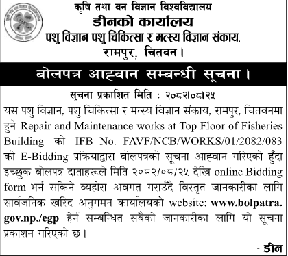 | 49 | Butwal Multiple Campus | Supply of Furniture HDHMR pre laminated Desk and Bench | 10/12/2025 | PPMO | 26/12/2025 | Click Here | |
