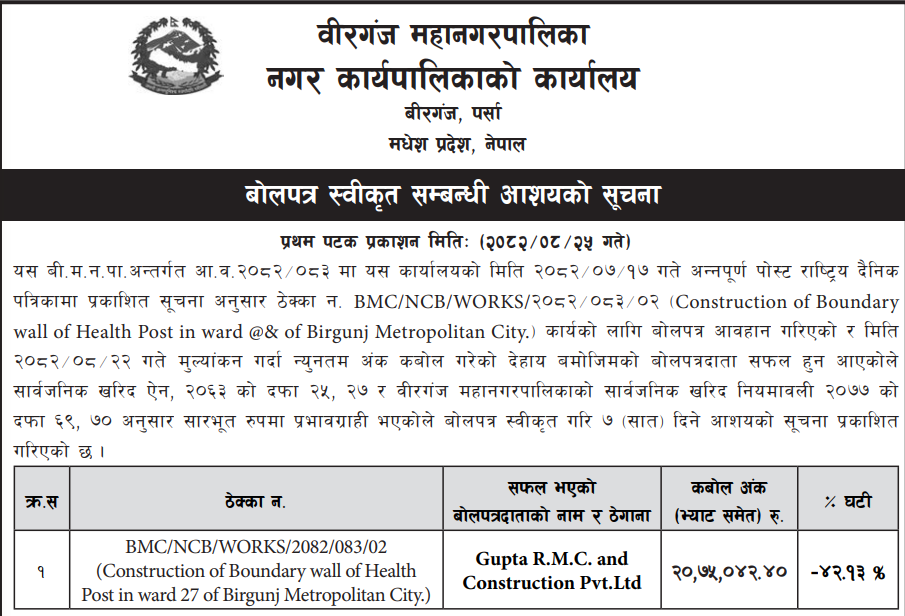 - Procurement of Medicine for Health Posts (2081/82), BMC |