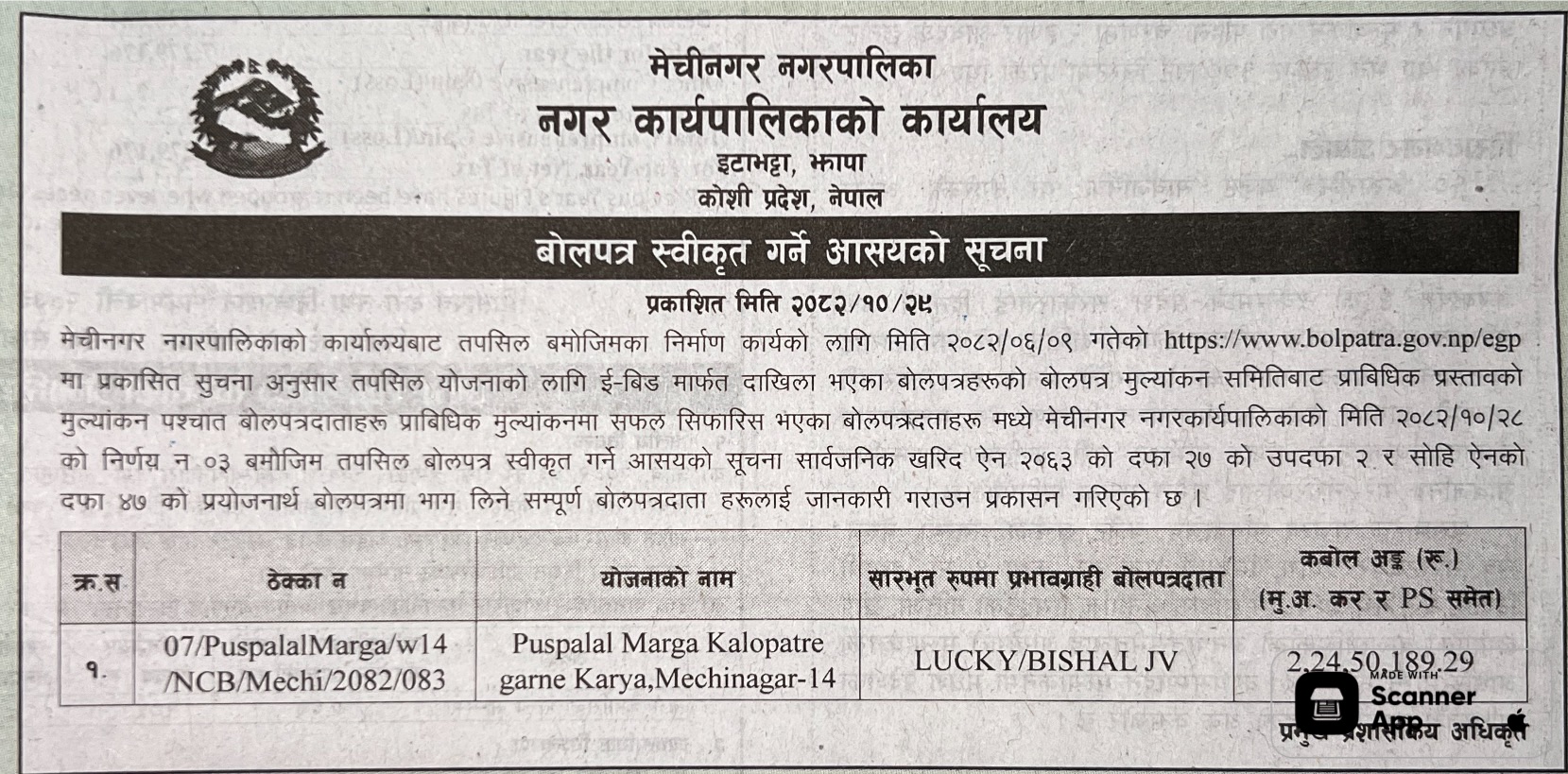 173 Nepalgunj Sub Metropolitan Office, Banke Procurement of Motorcycle for Office 12/02/2026 PPMO 15/03/2026 Click Here