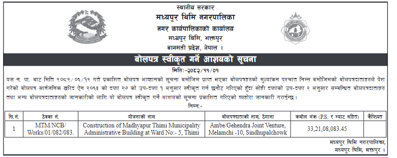 127 Myanglung Municipality Office, Koshi Province, TERHATHUM; Wadaa Karyalaya Bhawan Nirman,Myanglung 8 12/02/2026 PPMO 27/02/2026 Click Here