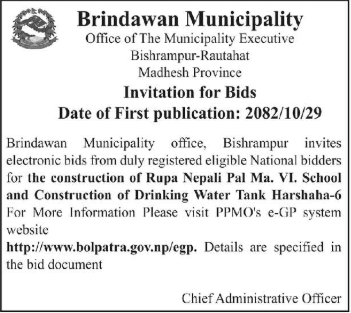 51 Bardaghat Municipality Office, Lumbini Province, NAWALPARASI WEST; Construction of Park along with Outdoor gym, Bardaghat-11, Gaidahawa. 12/02/2026 PPMO 15/03/2026 Click Here