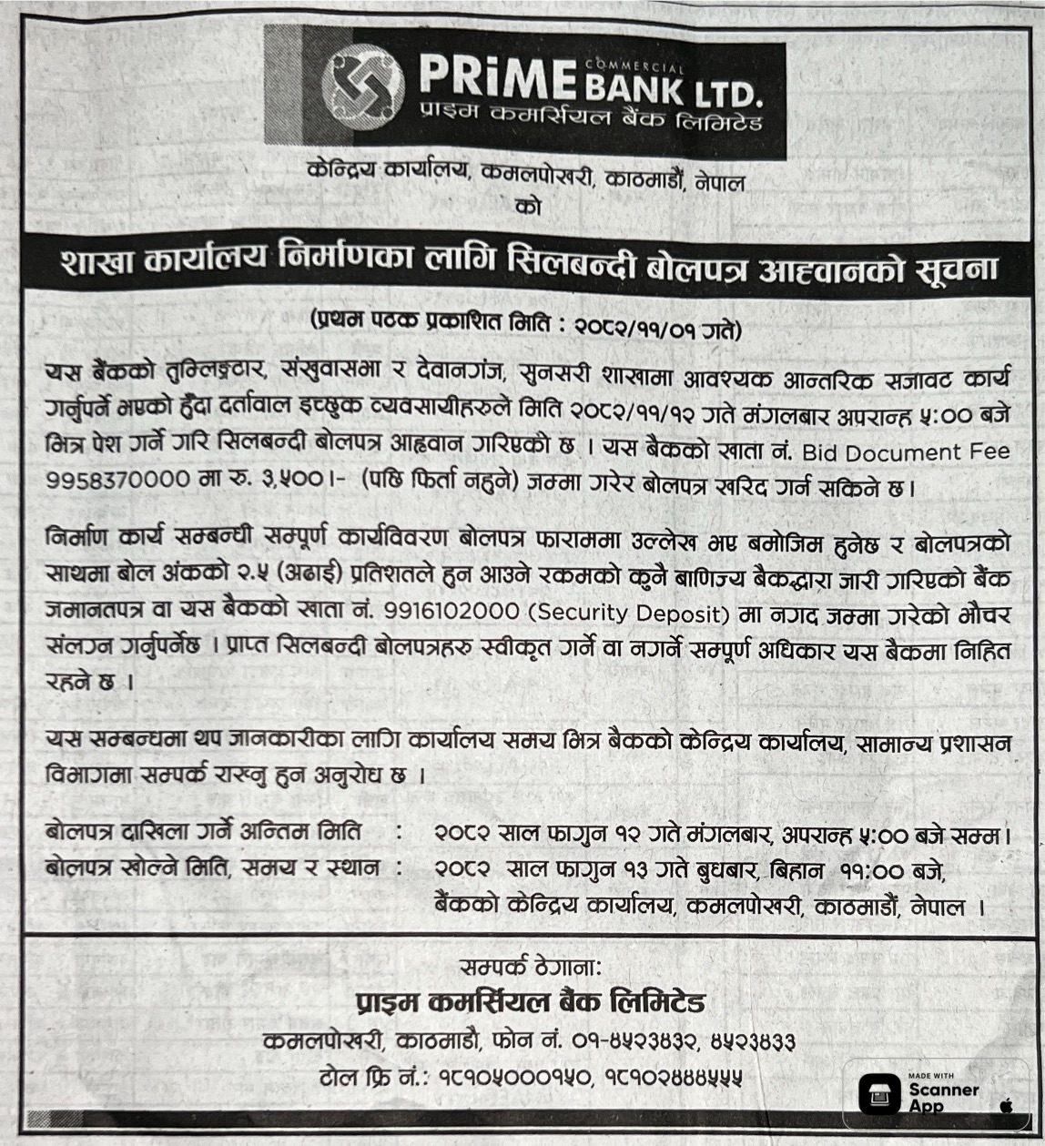 120 Sahari Bikash Tatha Bhawan Karyalaya, Kathmandu Tamu Bouddha Sewa Samiti Bhawan Bhautik Purbadhaar Nirman Ka.Ma.Na.Pa. 29 Anamnagar ,Kathmandu 12/02/2026 PPMO 15/03/2026 Click Here