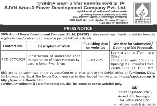निर्माण सम्बन्धी प्रकाशित सम्पूर्ण ठेक्का टेन्डर तथा बोलपत्र सुचनाहरु प्रदेश अनुसार 14/09/2025 (Sunday)