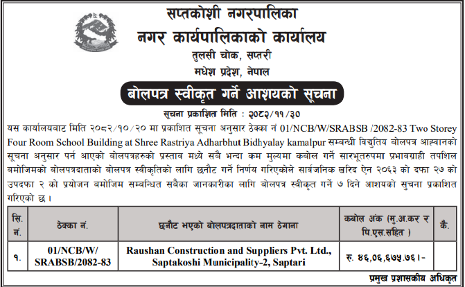 | 42 | Shree Neelakantha Secondary School | Shree Neelakantha Namuna Bidhyalaya Bhautik Nirman 2082-83 (II) | 13/03/2026 | PPMO | 12/04/2026 | Click Here | |