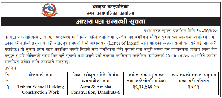 | 53 | Mechinagar Municipality Jhapa | Tridev Campus Adhuro Bhawan Nirman,Mechinagar -13 | 15/04/2026 | PPMO | 30/04/2026 | Click Here | |