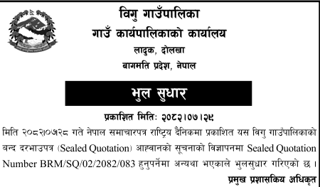 | 265 | Bigu Rural Municipality, Dolkha | Procurement of medicine | 14/11/2025 | PPMO | 01/12/2025 | Click Here | |