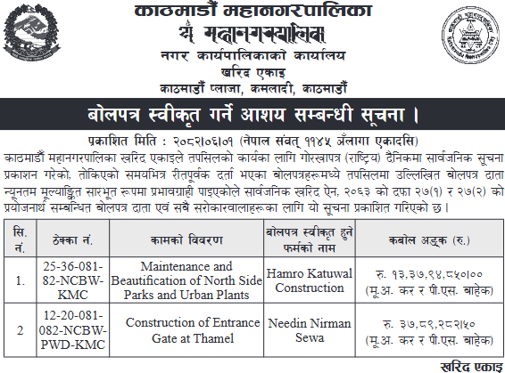 - Procurement of Medicine for Health Posts (2081/82), BMC |