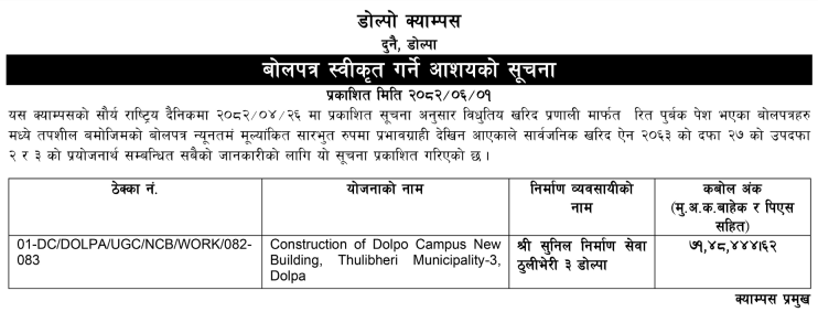| 17 | Darma Rural Municipality, Salyan | Construction of Bishweshar Basic School Building, Darma -05 | 16/09/2025 | PPMO | 16/10/2025 | Click Here | |