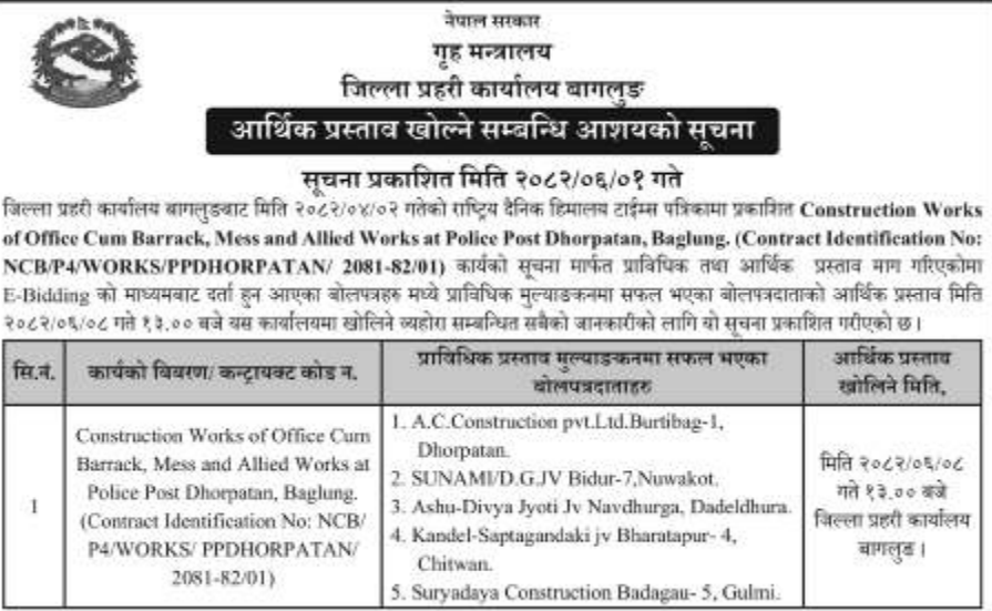 | 9 | Baglung Municipality | stone, Aggregate, sand, Subsistence and degraded material's Revenue Collection's Package no.4 kalakhola, Kaiya and Takuri bagar Baglung Municipality 13 and 14 Baglung. | 16/09/2025 | PPMO | 16/10/2025 | Click Here | |