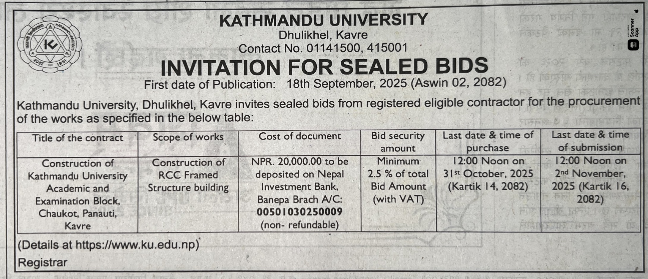 | 40 | Maiya Devi Girl's College, Bharatpur-10, Chitwan | Construction of college Buillding | 17/09/2025 | PPMO | 19/10/2025 | Click Here | |