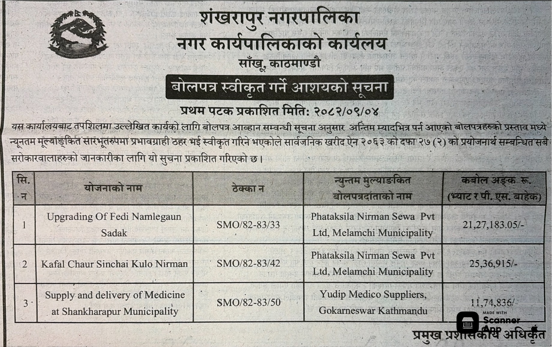 - Procurement of Medicine for Health Posts (2081/82), BMC |