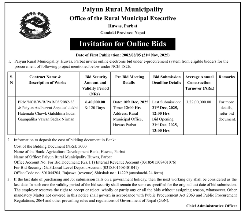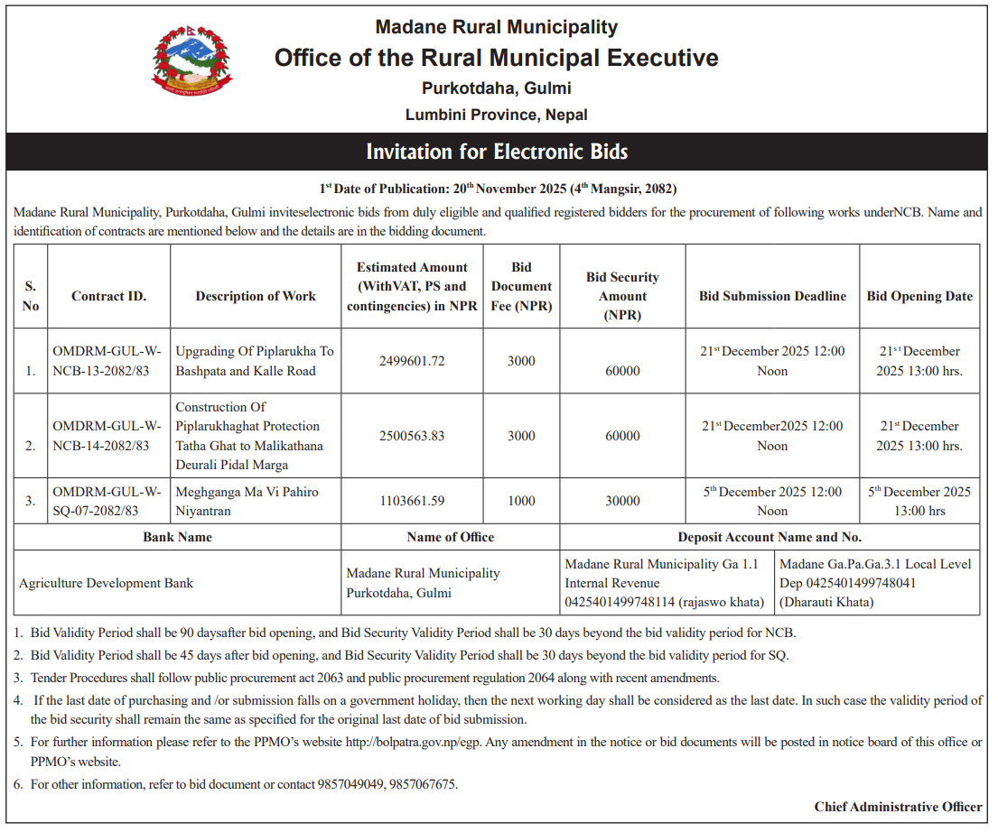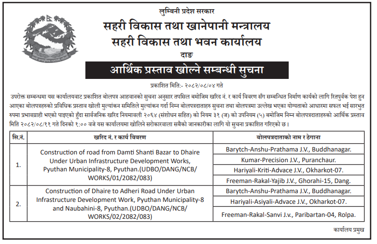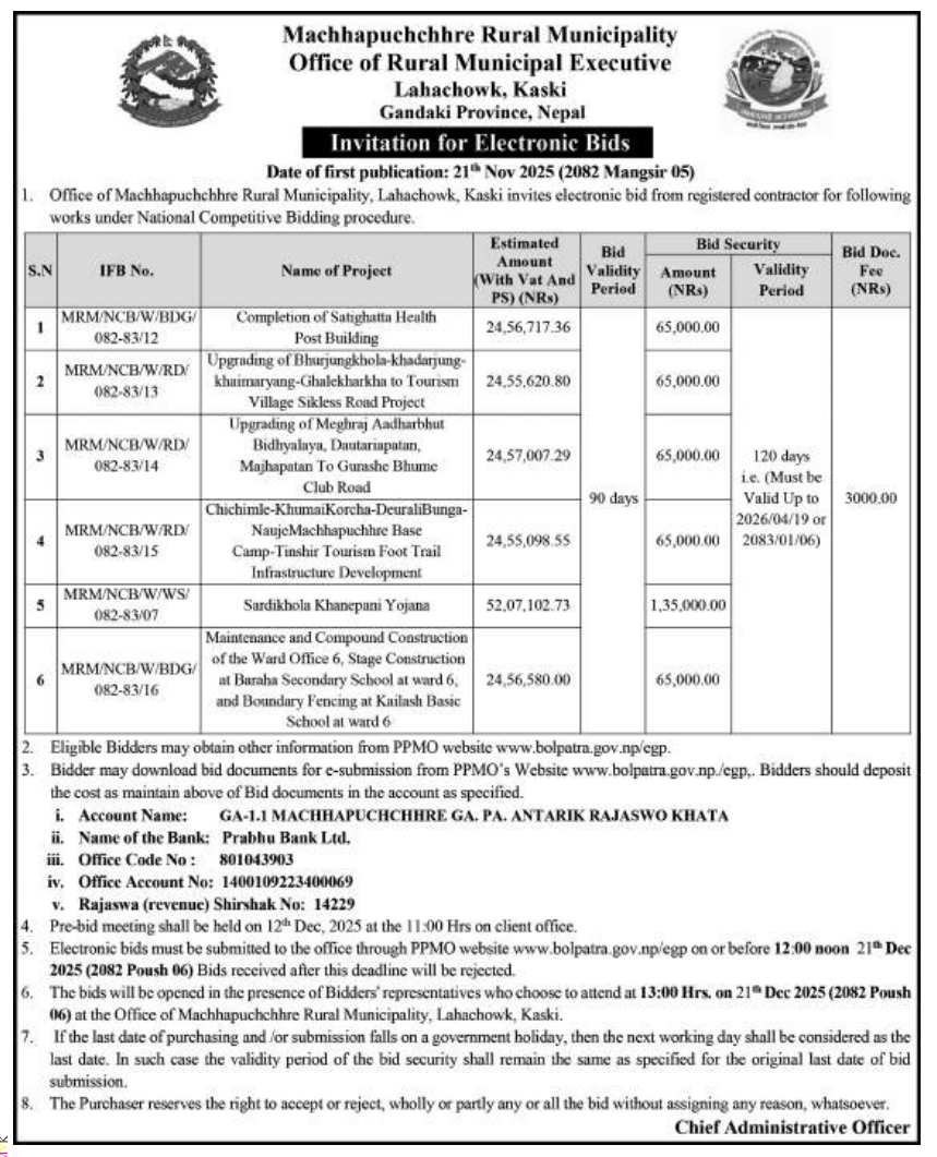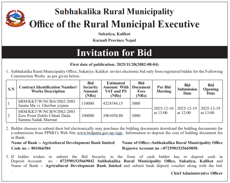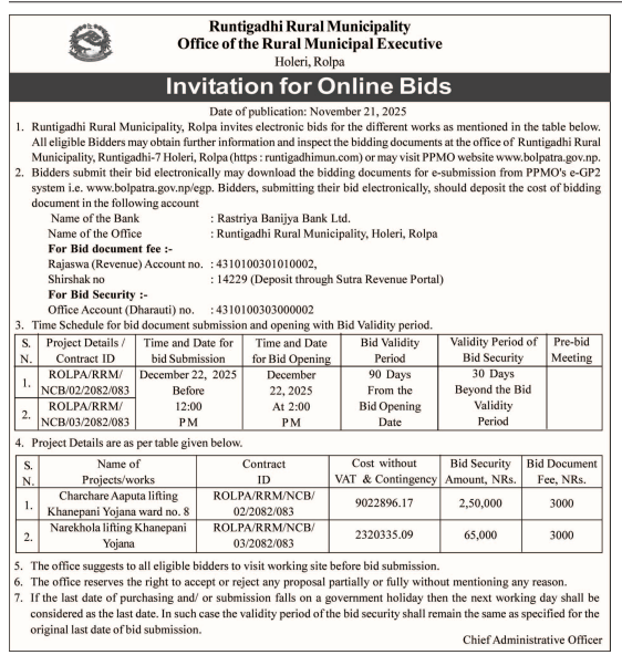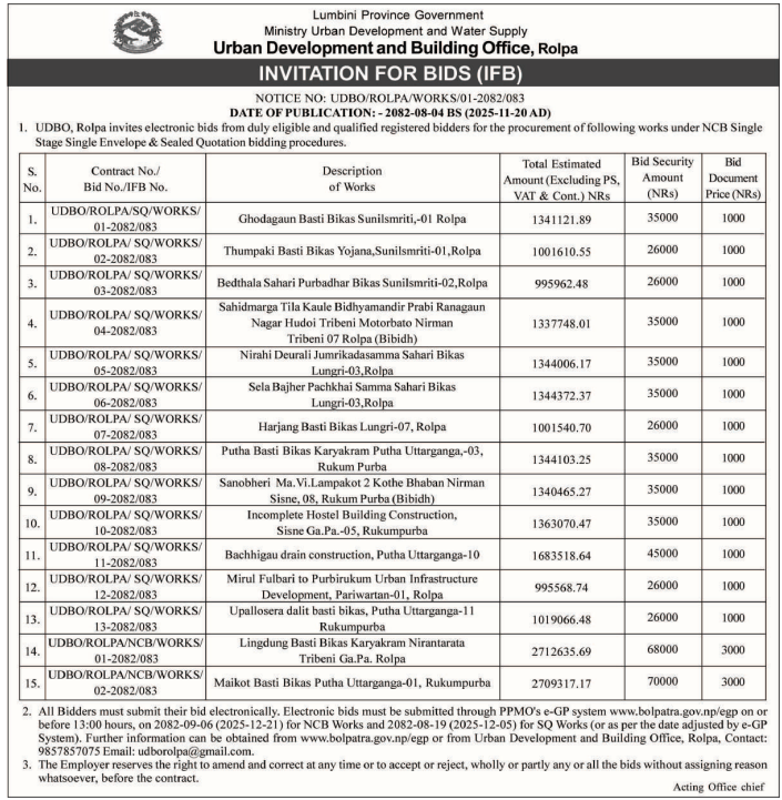 202 Urban Development and Building Office, Rolpa Putha Basti Bikas Karyakram Putha Uttarganga,-03,Rukum Purba 20/11/2025 PPMO 05/12/2025 Click Here