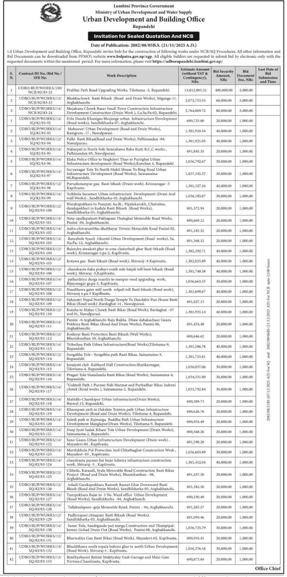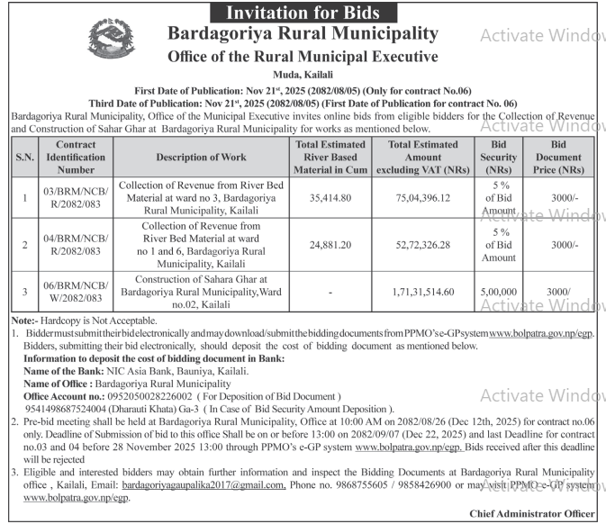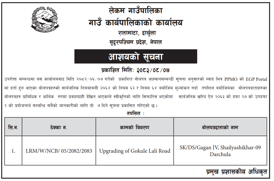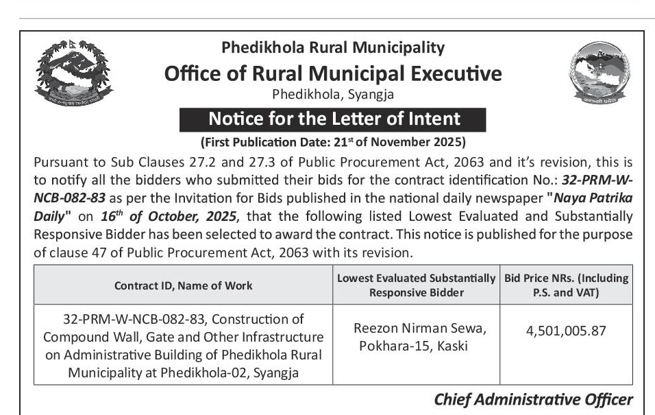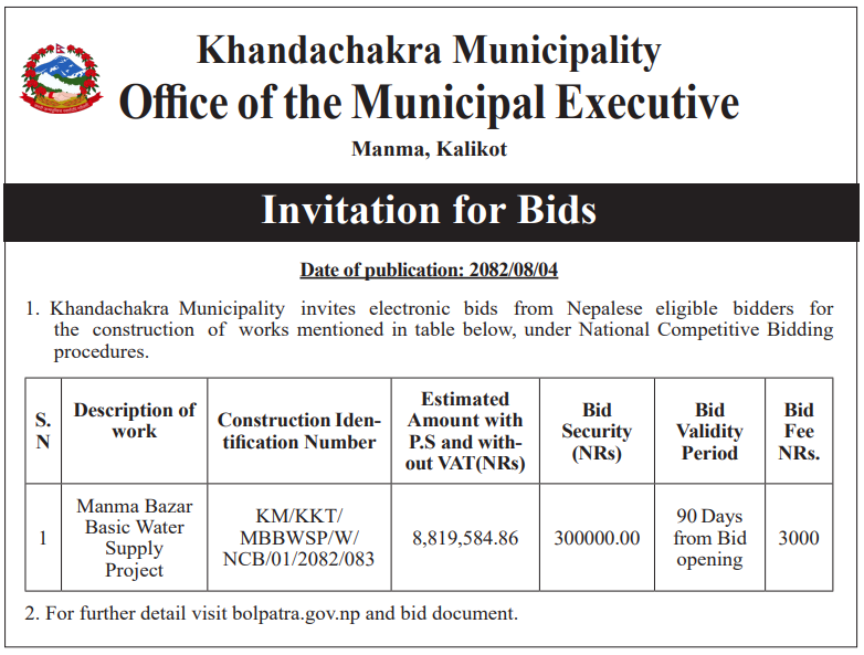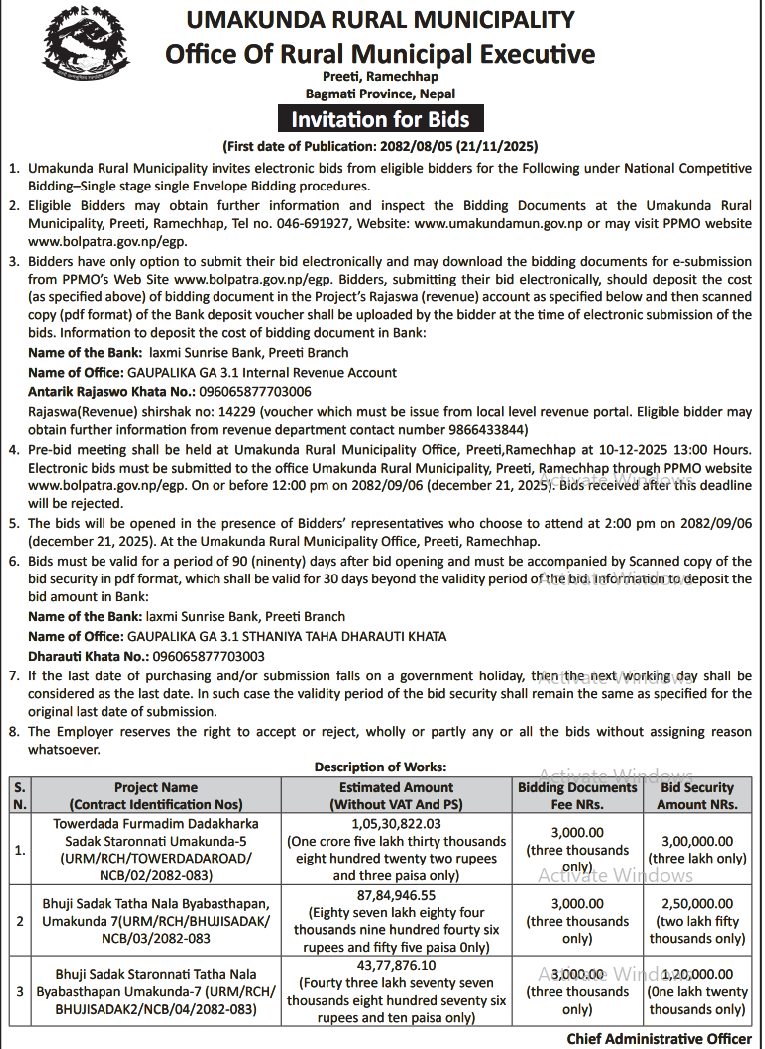 202 Urban Development and Building Office, Rolpa Putha Basti Bikas Karyakram Putha Uttarganga,-03,Rukum Purba 20/11/2025 PPMO 05/12/2025 Click Here