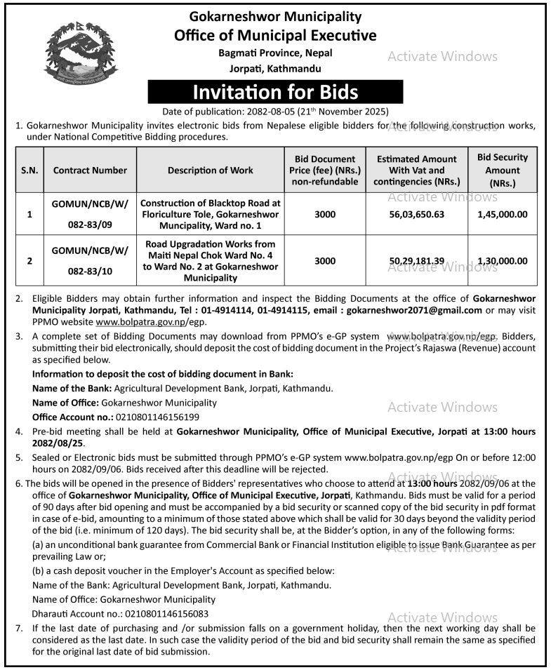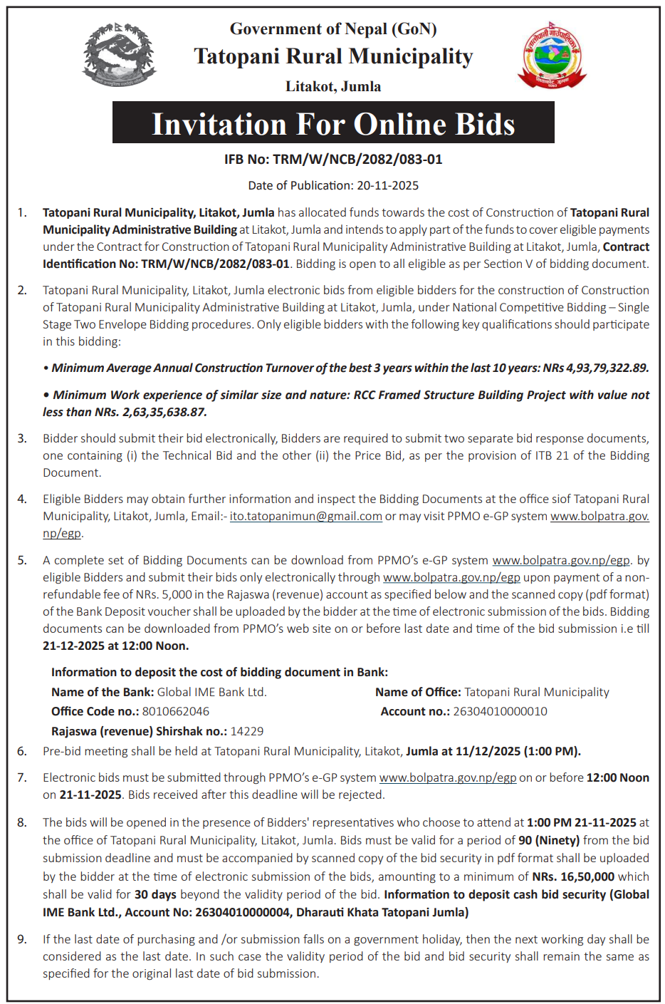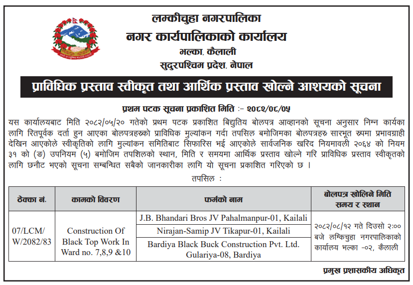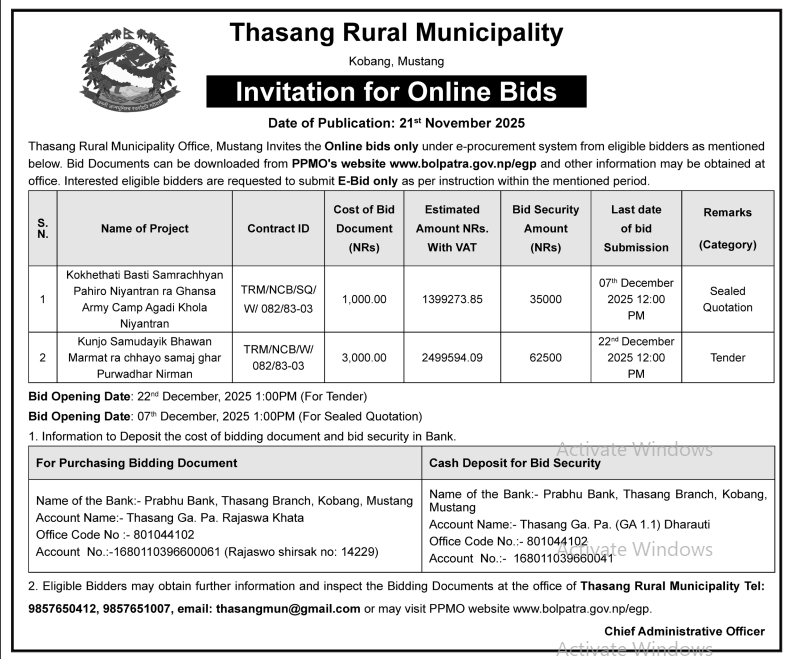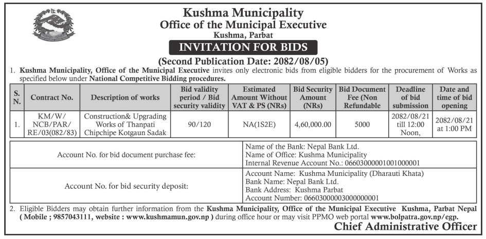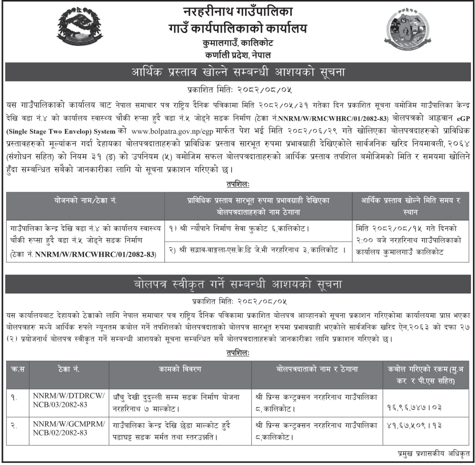 202 Urban Development and Building Office, Rolpa Putha Basti Bikas Karyakram Putha Uttarganga,-03,Rukum Purba 20/11/2025 PPMO 05/12/2025 Click Here