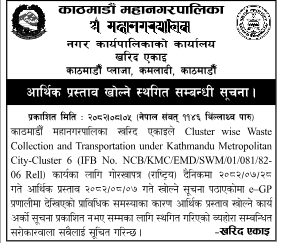 21 KMC Environment Department Construction works of barbed wire fencing around Bancharedanda landfill site perimeter 20/11/2025 PPMO 21/12/2025 Click Here