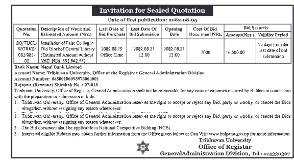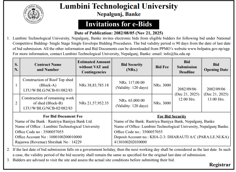 224 Manmohan Technical University, Morang Supply and Installation of High Voltage Laboratory Equipments 20/11/2025 PPMO 21/12/2025 Click Here