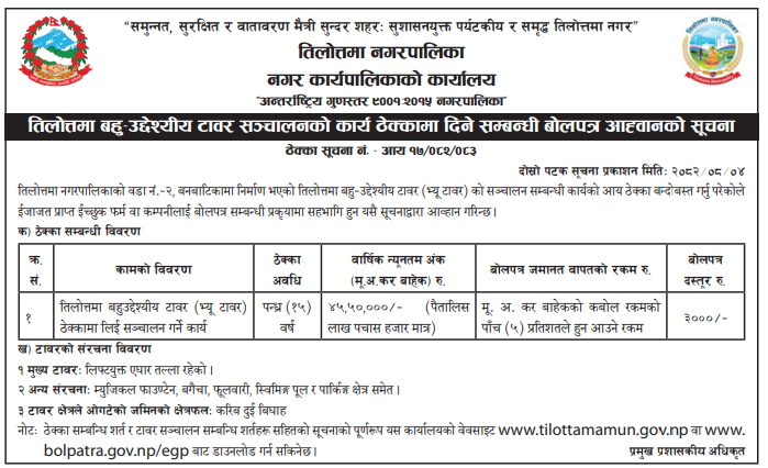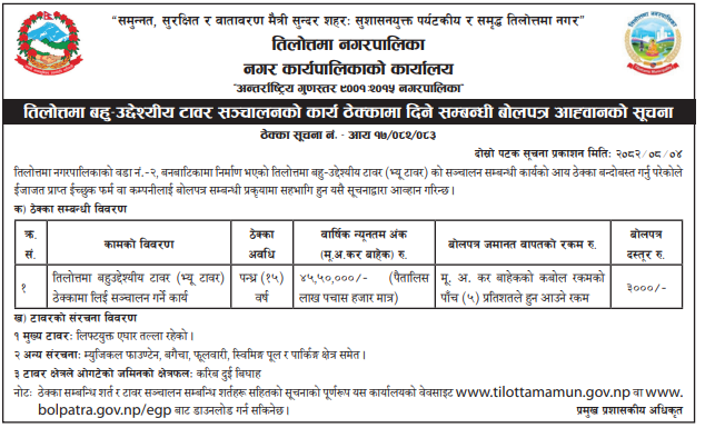 236 Tilottama Municipality Office, Rupandehi Tilottama Bahu-Uddeshyiya Tower Sanchalan Karya 20/11/2025 PPMO 05/12/2025 Click Here