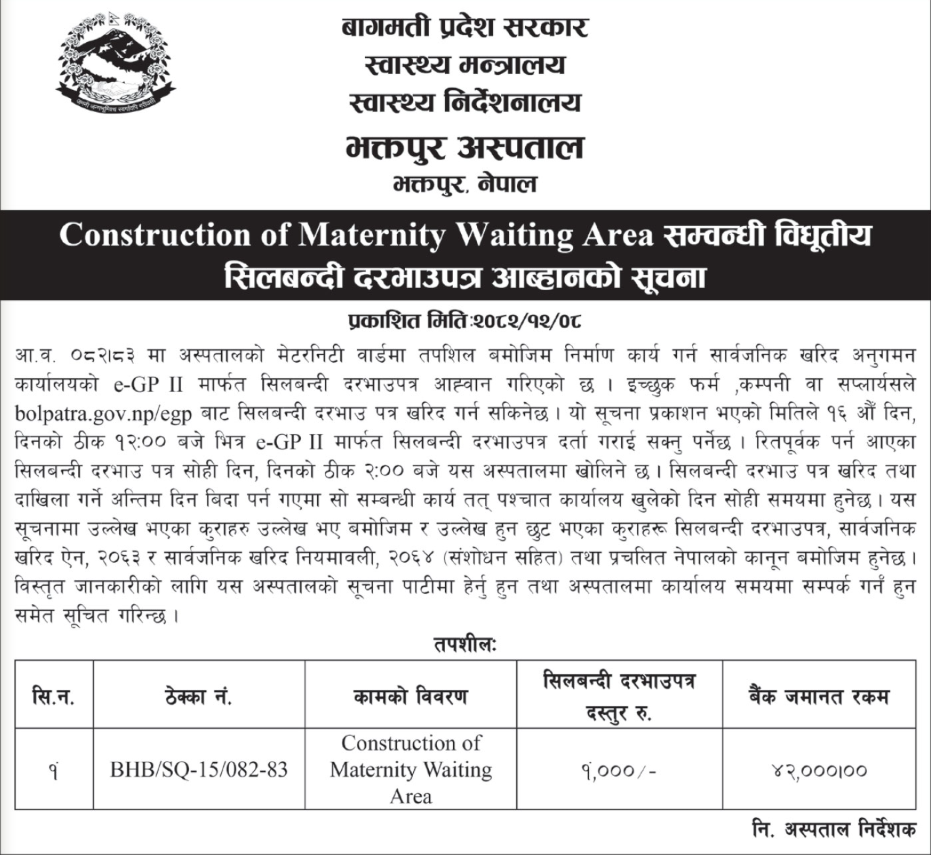 - Procurement of Medicine for Health Posts (2081/82), BMC |
