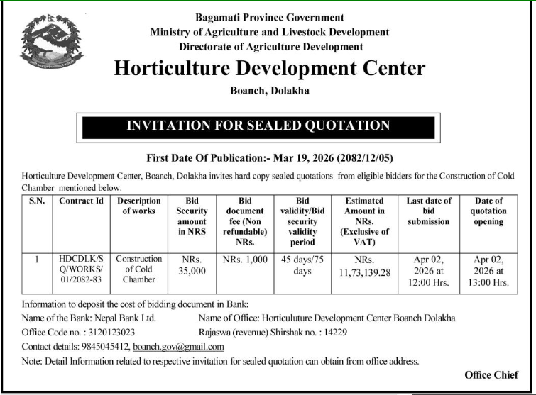| 53 | Chandannath Municipality , Jumla | Rana Dophantha Pahiro Niyantaran | 20/03/2026 | PPMO | 05/04/2026 | Click Here | |