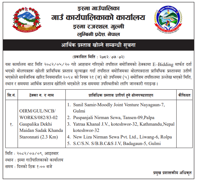| 37 | Chaurjahari Municipality | Chaurjahari Municipality Rukum (west) bata Prakashit hune Bigyapan tatha suchana prakasan garne kam or F/y 2082/083 | 20/10/2025 | Ppmo | 04/11/2025 | Click Here | |